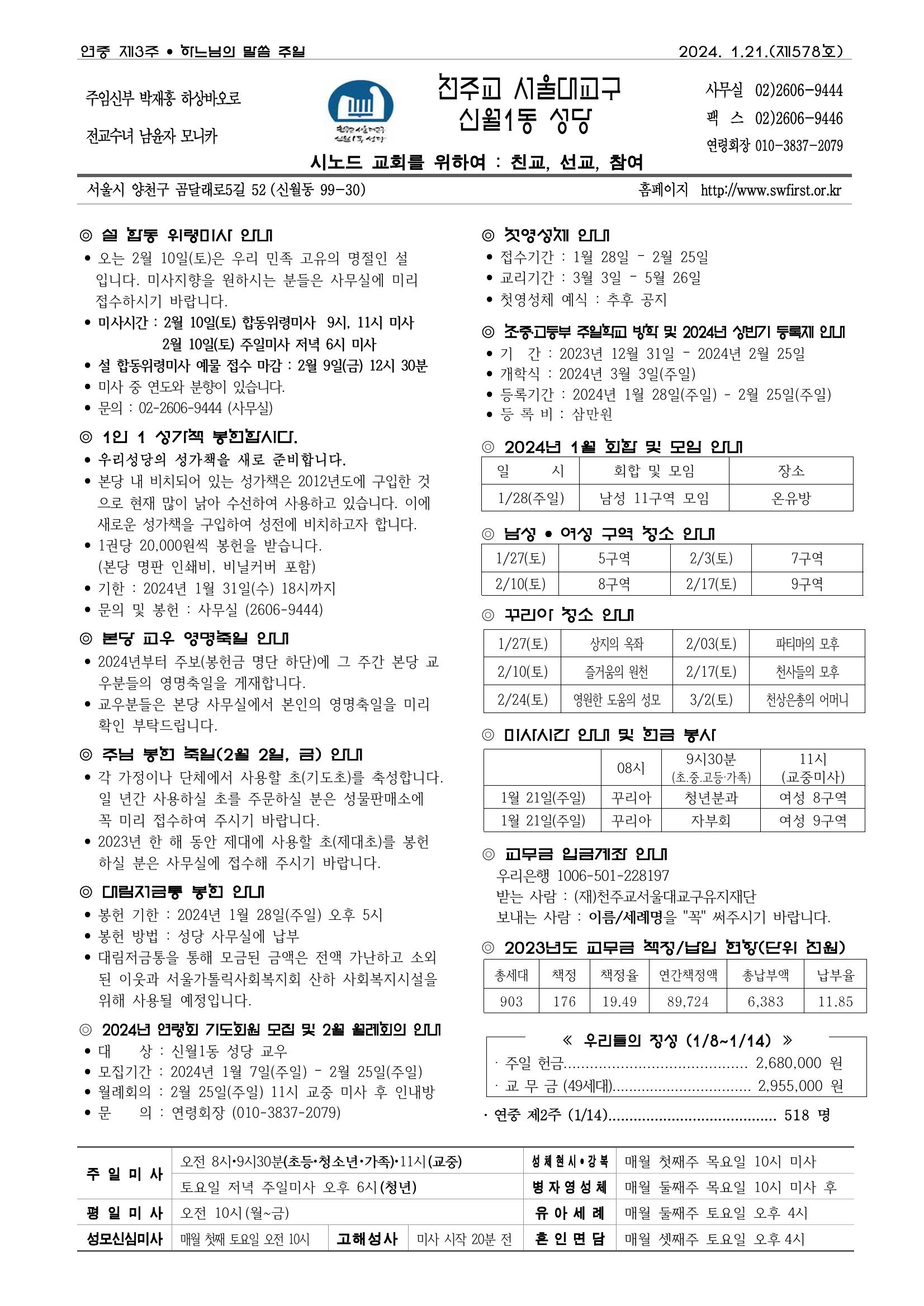 2024년 1월 21일 연중 제3주일 하느님의 말씀 주일 페이지 정보 작성자 관리자 댓글 0건 조회 489회 작성일 24-01-20 13:22 목록 본문 댓글 0 댓글목록 등록된 댓글이 없습니다.