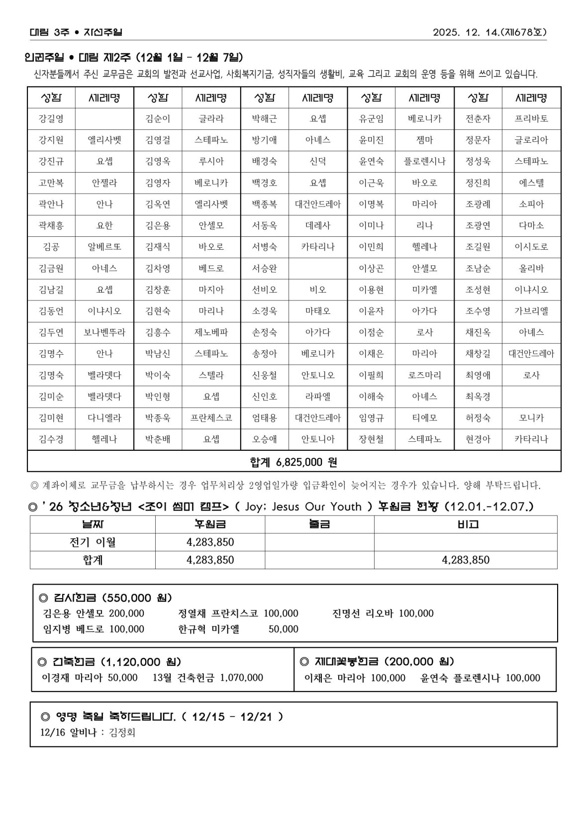 12월14일 대림 3주 자선주일