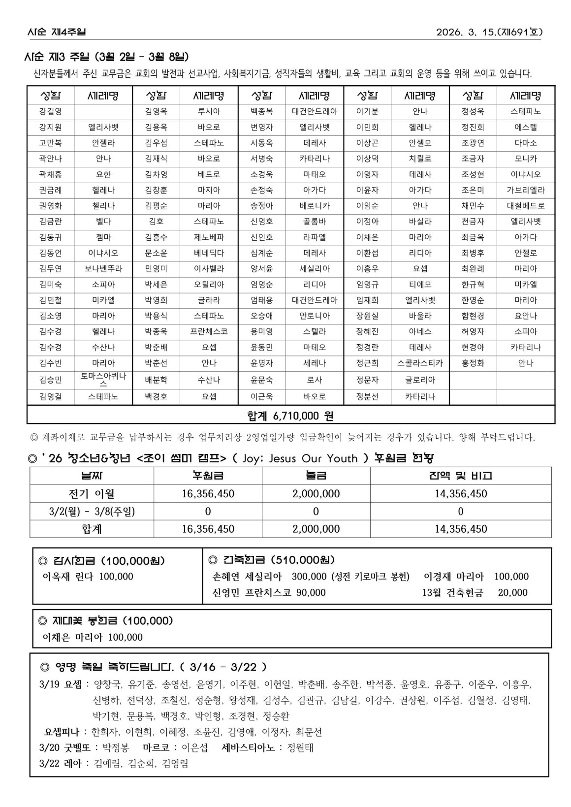 3월 15일 사순 제4주일