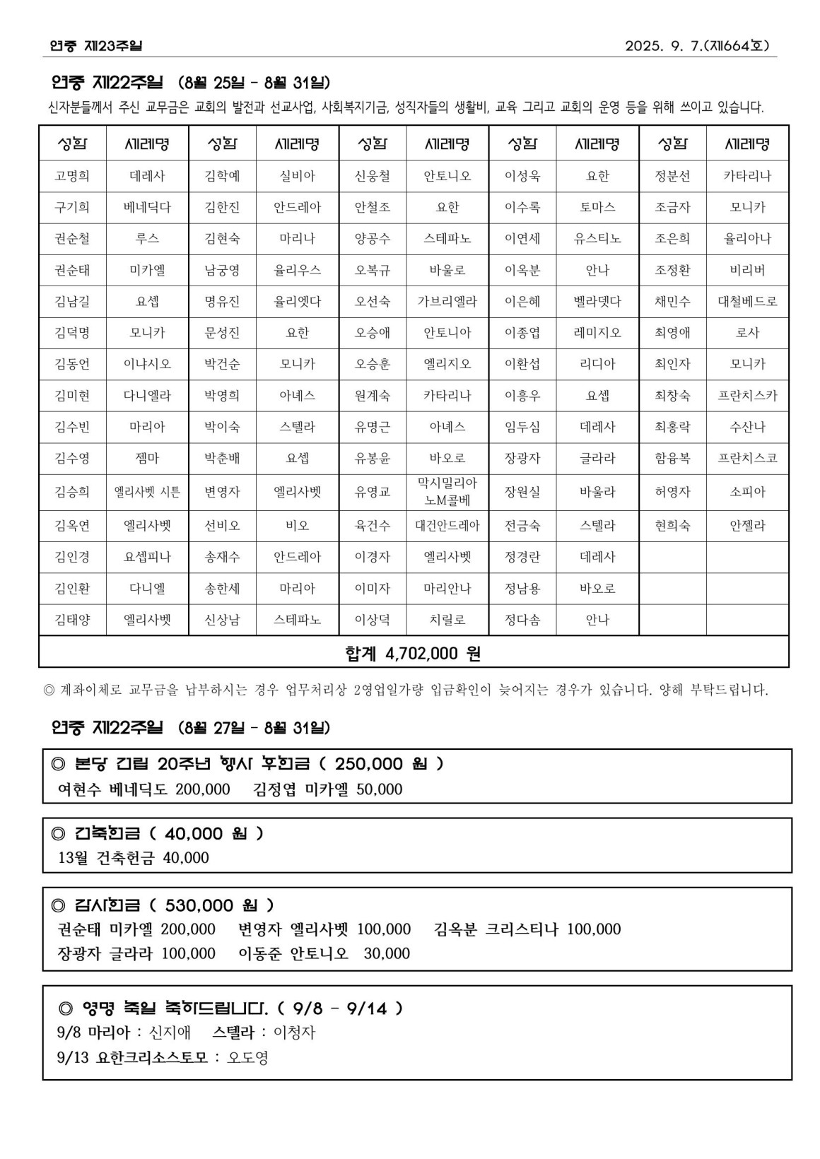 8월 31일 연중 제22주일